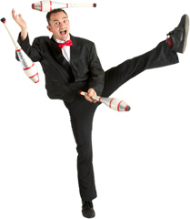 - Ein eleganter Jongleur schwingt die Keulen, er bewegt sie geschickt im Rhythmus der Musik. Take Five. Tango. Cancan. In der Kombination mit Tanz und Akrobatik gelingt es ihm, die Zuschauer zu überraschen und zu amüsieren.